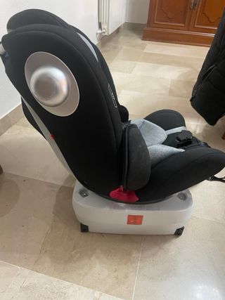 Silla de coche para bebé en buen estado. Perfecta para llevar a tu pequeño de forma segura y cómoda. - Tapicería gris y negra. - Estructura robusta y resistente, giratoria y reclinable. - En sentido de la marcha y contrario.