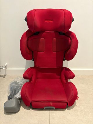 Silla de coche RECARO Monza Nova 2 roja homologada para grupos 2-3 (15-36 kg), ideal desde los 3,5 hasta los 12 años. Instalación universal con sistema Isofix o cinturón de seguridad, apta para cualquier coche. Incluye sistema de sonido integrado para que los peques disfruten su música durante el viaje. Máxima comodidad gracias a la espuma ergonómica, aireación y reposacabezas ajustable. Alta seguridad con protección lateral ASP y excelente puntuación en pruebas ADAC (1,8). Muy buen estado.