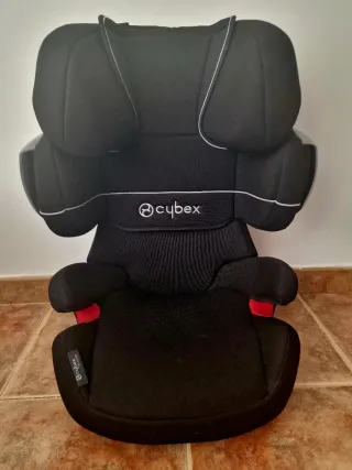 Silla de coche Cybex Solution X-Fix para grupos 2 y 3 ( peso 15 a 36 kg). Diseñada para ofrecer seguridad y comodidad. Precio original 119 €. - Color azul y negro. - Reposacabezas ajustable. - Sistema de protección contra impactos laterales. - Funda lavable. Se aprecia alguna marca. Supongo que se podrá lavar.