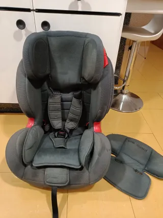 Silla para el coche, no tiene isofix. Lleva correas y una barra para sujetar la silla al asiento. Se corresponde con el grupo 1-2, desde los 9 meses hasta los 25 kg.
