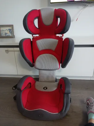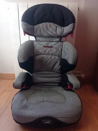 Silla de coche Jane para grupos 2 y 3, con sistema Isofix para una instalación segura y sencilla. - Diseñada para ofrecer comodidad y protección. - Tapicería en color rojo y gris. - Reposacabezas ajustable. - Para peso entre 15 y 36 kg. - Se puede utilizar también si no se tiene sistema Isofix, con el cinturón del coche. - Está en buen estado de conservación. - Se puede desmontar el respaldo y usar como elevador.