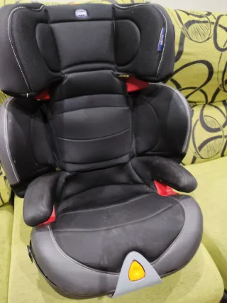 Silla de coche de la marca Chicco con sistema Isofix. Diseñada para la seguridad y comodidad.. me costo 380€ , solo hay q lavar la funda por lo demas esta en perfectas condiciones - Color negro y gris. - Reposacabezas ajustable. - Fundas acolchadas.