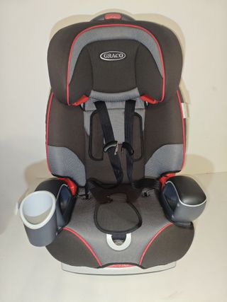 Silla de coche Graco para los grupos I, II y III. Reclinable para que no se caiga la cabeza cuando duerme. Sillita para el coche en buen estado de la marca Graco. Se adapta al crecimiento del niño/a regulando el reposacabezas y el arnés. Es apta desde los 9 meses hasta los 12 años o bien, desde los 9kg hasta los 36kg. Lleva un posa vasos en un lado y un guarda juguetes en el otro. - Incluye cinturón de seguridad de 5 puntos con protecciones de pecho y entrepierna. Se puede ver sin compromiso. Entrega en mano. Silla coche, isofix, jane, nenuco, bebe, cybex, maxi-cosi, casualplay, chicco