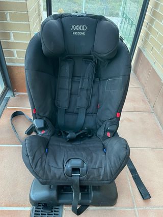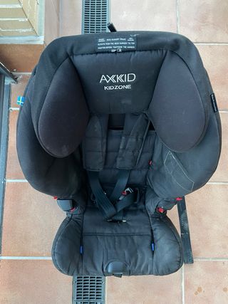 Silla de coche Axkid Kidzone en color negro, apta para niños de 9 a 25 kg (9 meses a 6 años aprox.). Se puede instalar a favor o en contra de la marcha sin isofix. - Homologada para el grupo 1 y 2. - Instalación sencilla y segura. - Tejido transpirable y acolchado. - Amplias alas laterales para protección extra en caso de impacto lateral. - Pata de apoyo extra larga que permite la instalación en una gran variedad de vehículos. - Desfundable y lavable a máquina a 30 °C (lavada) Nunca ha recibido impacto alguno. Precio nuevo: 400€