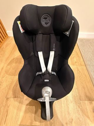 Vendo silla de coche Cybex Sirona S i-Size en color negro. Es una de las sillas más seguras y cómodas del mercado, con excelentes puntuaciones en los test de seguridad (ADAC). Características principales: • Rotación 360°: Permite girar la silla hacia la puerta para sentar y abrochar al niño sin esfuerzo y sin forzar la espalda. • Uso: Desde el nacimiento (con reductor) hasta los 105 cm (aprox. 4 años). • Seguridad: Sistema de protección lineal contra impactos laterales (L.S.P.) integrado y anclaje ISOFIX con pata de apoyo para máxima estabilidad. • Posiciones: Reclinable en varias posiciones tanto a contramarcha como en el sentido d