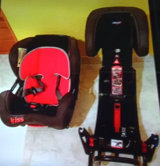 Silla de coche Klippan Kiss con base extraíble para portabebés. Silla a contramarcha de las más suras del mercado. Tiene ISOFIX . Desde recién nacidos hasta los 4 años ( 18 KG ). - Diseño en color negro y rojo. - Incluye arnés de seguridad. - Base con anclajes y sistema de sujeción. Está en buen estado.