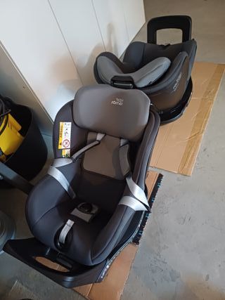 Silla de coche Britax Römer Dualfix 2 R en color gris. Usada pero en perfecto estado. Con Isofix y en sentido contramarcha. También se puede usar en el sentido de la marcha. Hemos lavado todas las fundas. Silla super cómoda para los padres, porque se puede girar para amarrarlos y para los peques.