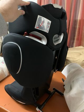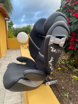 Silla de coche Cybex Gold en color negro. Diseñada para la seguridad y comodidad. - Tejido acolchado se desmonta totalmente para lavarlo todo. Tiene isofix que se guarda o se saca segun necesites. Tiene laterales que se sacan para apoyar mejor la silla con la puerta y seugn el coche se adapta. No pesa nada es buenisimo! tiene las “alas” donde la cabeza para que lo apoyen y se duerman, ademas se reclina hacia atras para que no se le caiga la cabeza hacia adelante. Válido desde los tres años hasta los 12 va elevándose la zona de la cabeza y después se desmonta para quedarse solo en alzador. ya no vuelves a comprar otra silla.