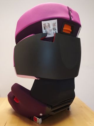 Silla de coche Cybex en color morado, con sistema Isofix. - Diseño ergonómico. - Tapicería suave y cómoda. - Reposacabezas ajustable.