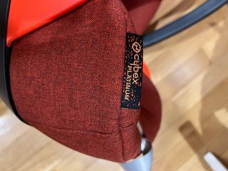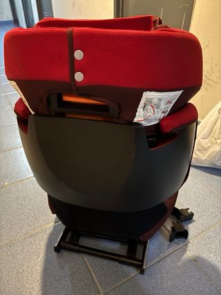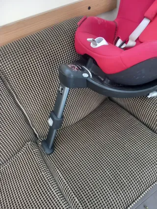 Silla de coche Cybex con sistema Isofix para niños. Manchada por udo pero va muy bien - Color rojo. - Base giratoria. - Pata de apoyo.