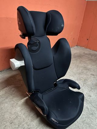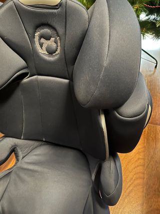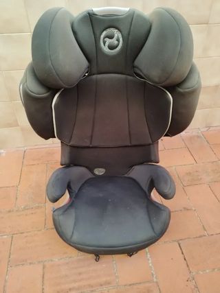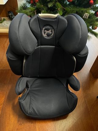 Silla de coche Cybex para grupos 1, 2 y 3. Diseñada para acompañar el crecimiento del niño. - Tapicería negra. Funda asiento rota. - Reposacabezas ajustable. - Sistema de protección lateral. - Isofix No sé envía, solo entrega en mano.