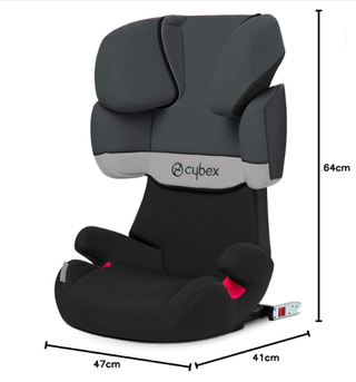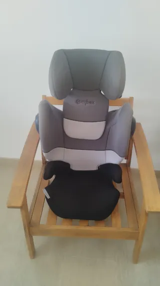 Silla de coche Cybex con sistema Isofix, apta para grupos 2/3. - Diseño en color gris y negro. - Indicaciones de uso y peso en la etiqueta.