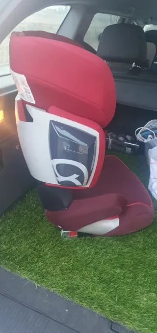 Silla de coche Cybex Solution X-fix en color rojo. - Diseño ergonómico. - Reposacabezas ajustable. - Sistema de protección lateral. CBX by CYBEX Silla de coche infantil Solution X i-Fix, Para coches con y sin ISOFIX, De 3 a 12 años aprox. Nueva 99€ Usada 2 veces en coche de abuelos