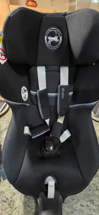 Silla de coche Cybex Sirona en color gris y negro. Cuenta con arnés de seguridad de 5 puntos y reposacabezas ajustable. Poquísimo uso y con funda en coche de otro familiar. Prácticamente nueva. Precio en tienda 389€. - Diseño ergonómico. - Isofix - Funda extraíble y lavable. - Indicador de instalación correcto. - Reductor de bebe - Giro 360° - De 0 meses a 4 años
