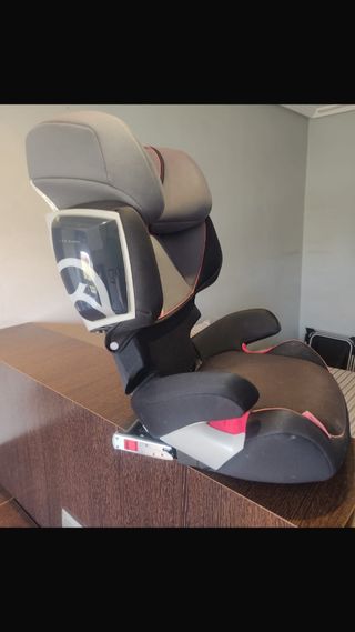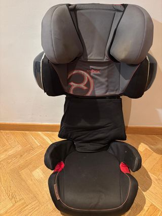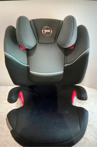 Silla de coche Cybex para grupos 1, 2 y 3. Diseñada para ofrecer seguridad y comodidad. Está en buen estado. Sistema Isofix - Tapicería en tonos grises y negros. - Detalles en color rojo. - Reposacabezas ajustable.