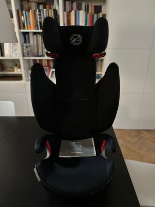 Silla de coche Cybex Solution S-Fix en color negro, con sistema Isofix. Grupo 2-3. De 15 a 36 Kg - Diseño ergonómico y acolchado. - Cómoda y funcional (respaldo y reposacabeza regulables). - Segura. Se ancla con el sistema Isofix. - se vende limpia y lista para usar - completa de instrucciones.
