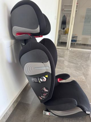 Silla de coche Cybex grupo 2/3 con sistema isofix. Está en buen estado, aunque presenta algunas señales de uso. - Válida para niños de 15 a 36 kg. - Sistema Isofix para una instalación sencilla y segura. - Tapicería negra.