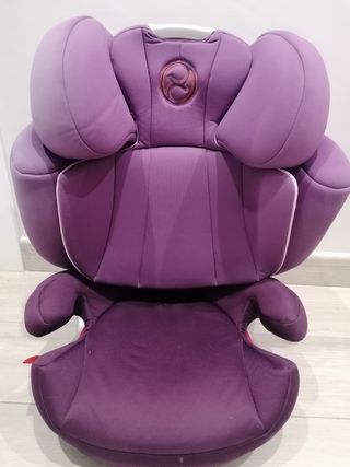 Silla de coche Cybex en color morado y lila. Diseñada para la seguridad y comodidad. Isofix, bandeja frontal opcional, respaldo extensible, enganche de cinturón de seguridad, grupo 2 y 3. Desde los 9 hasta los 36 kg. Se puede reclinar. También dispone de segundas fundas. Muy poco uso, ha sido la silla en segundo coche, por lo tanto se ha utilizado poco. - Diseño ergonómico. - Tejido suave y confortable. - Marca Cybex Pallas M-fix