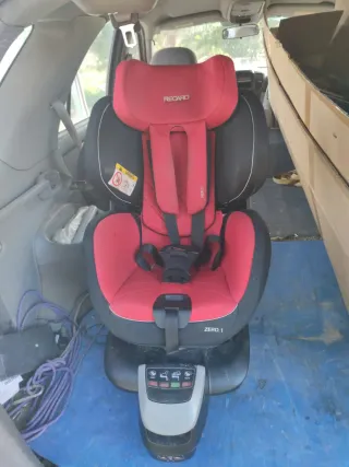 Silla de coche Recaro Zero.1 con giro 360 grados. Diseñada para la seguridad y comodidad de los más pequeños. - Color rojo y negro. - Sistema de arnés HERO. - Base integrada con indicadores de instalación. Isofix Está sucia del uso pero no se le ha derramado nunca ningún líquido por lo que es fácil de limpiar Costó 600€ en su dia