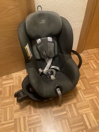 Silla de coche Britax Römer con base giratoria. Se ha utilizado durante 2 años en un coche con trayecto de casa a cole y de cole a casa. La silla esta como nueva. Motivo de cambio de silla por crecimiento del niño. - Color gris oscuro. - Sistema de arnés - Reposacabezas ajustable. - Isofix -Desde los 0 años a los 4