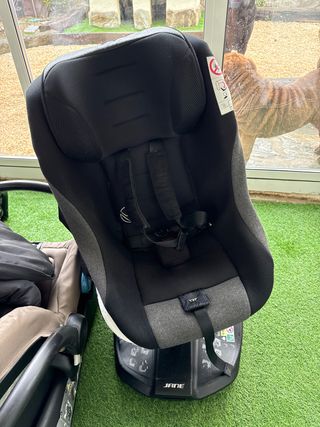Silla de coche de la marca Jane, en color gris y negro. - Diseño ergonómico. - Sistema de arnés de seguridad. - Fundas acolchadas. Es giratoria, muy comodo a la hora de introducir al bebe. Con reductor. Sirve para niños de 40 a 105 cm.