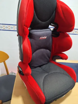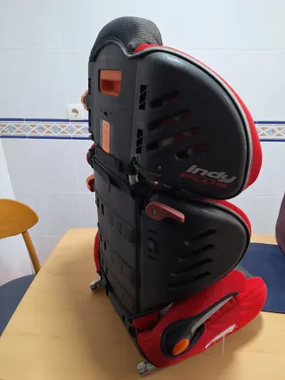 Silla de coche Jané Indy Plus en color rojo y negro. - Diseño ergonómico. - Tapicería acolchada. - Reposacabezas ajustable. Sistema Isofix