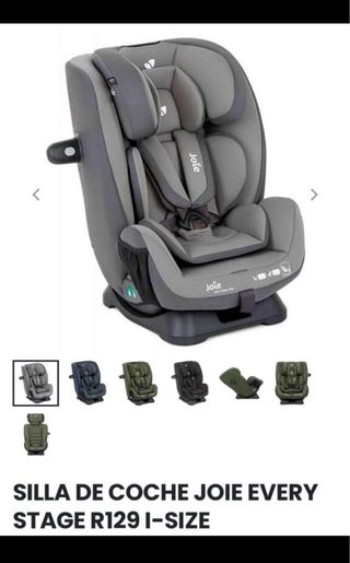 Silla de coche Joie Every Stage R129 i-Size en color gris. - Homologación i-Size. - Apta para varias etapas de crecimiento. Hasta los 12 años. - Diseño acolchado para mayor comodidad. Muy polivalente, crece hacia arriba y hacia fuera. Usada en un segundo coche, casi nueva.