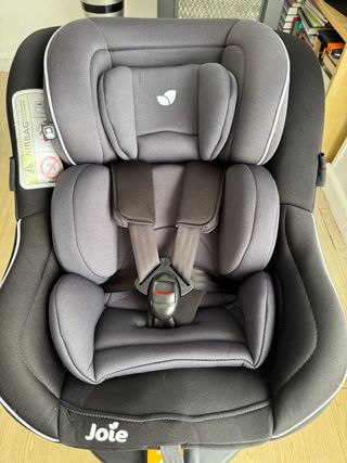 Silla de coche de la marca Joie, en color gris y negro. - Gira 360 para mayor comodidad a la hora de colocar al bebé. - Desde recién nacido hasta 3 años. - Diseño acolchado para mayor comodidad. - Incluye arnés de seguridad. - Reposacabezas ajustable.