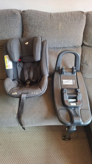 Silla de coche para bebé de la marca Joie, con un diseño moderno y funcional. - Base giratoria 360 grados. - Color gris. - Acolchado para mayor comodidad. me costó 500€ la vendo sa quedado pequeña precio algo negociable