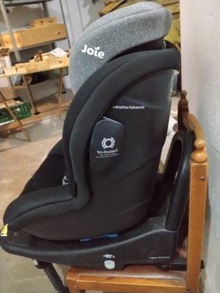 Silla de coche Joie i-Anchor Advance con certificación i-Size. Diseñada para ofrecer seguridad y comodidad. - Desde nacimiento hasta los 4 años. - A contramarcha: desde el nacimiento hasta los 105cm, menos de 18,5kg. A favor de la marcha: desde los 15 meses hasta los 105cm, menos de 18,5kg. - Tapicería de tela en color gris jaspeado y azul marino. Todo es desenfundable para meterlo en la lavadora. - Sistema de arnés de 5 puntos. - Reposacabezas ajustable. - Reductor para recién nacidos incluido. Todo incluido: silla, reductores y base isofix. El precio original es de 350 a 400 euros.