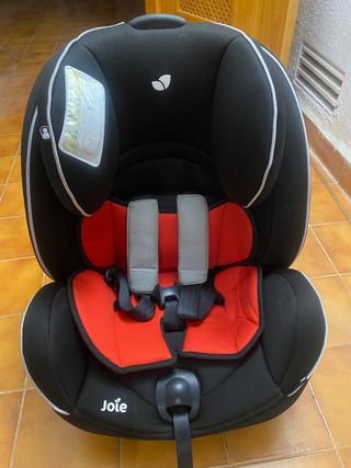 Silla de coche evolutiva de la marca Joie, modelo Every Stage. Diseñada para acompañar el crecimiento del niño. - Tapicería en tonos rojos y granates. - Incluye reductores para mayor comodidad. - Sistema de arnés de seguridad. - La silla va sujeta con el cinturón de 3 puntos del coche. - Los arneses, al igual que el broche de la entrepierna, se pueden quitar cuando ya no los necesite. - Esta marca es de las indicadas para niños que son más grandes para su edad (por el tamaño de sus productos) -Acolchado que se puede lavar (está recién lavado a mano). -La silla no ha tenido ningún accidente, ni golpe.