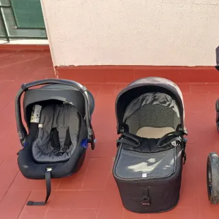 Conjunto de carrito de bebé 3 en 1, ideal para los primeros años del bebé. Incluye silla de paseo, capazo y grupo 0. - Silla de paseo reclinable. - Capazo con capota. - Silla de coche Grupo 0. - Chasis resistente y maniobrable.