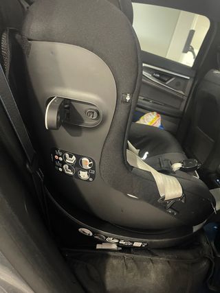 Silla de coche Maxi-Cosi Mica 360, apta para niños desde el nacimiento hasta los 4 años. Es un modelo giratorio 360 grados para facilitar la colocación del niño. - Homologada para el grupo 0+/1 (0-18 kg). - Instalación Isofix con pata de apoyo. - Asiento acolchado y reductor para recién nacidos. - Fundas extraíbles y lavables. Tuve un enganchon en la tapicería por eso es tan económico. El funcionamiento está genial. Muy cómodo. Puede ir a contramarcha hasta los 4 años. Es de fácil instalación y de las más seguras.