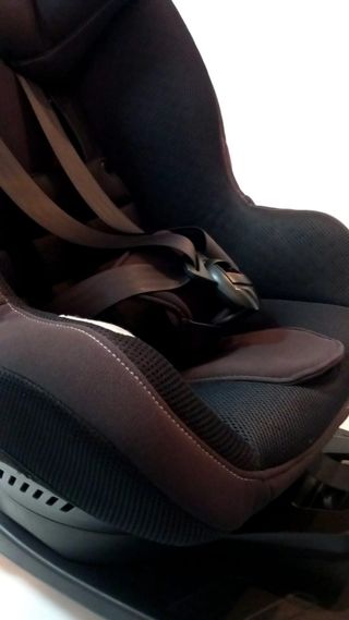 Se gira hacia la puerta del vehículo para colocar al bebé de forma cómoda. Tiene el reductor para cuando el bebé es muy pequeño