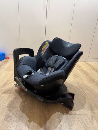 Lo vendo era para regalo a familia, pero final no la necesita. Silla de coche giratoria Britax Römer SWIVEL Diseñada para ofrecer seguridad y comodidad. Apta para recién nacidos desde los 40 cm hasta los 125 cm, 7 años aproximadamente. La SWIVEL podemos instalarla a contramarcha hasta los 4 años, cuenta con carcasa de elevador con respaldo y con conectores ISOFIX independientes que facilitan su instalación. A partir de los 15 meses, de manera opcional, se puede instalar de cara a la marcha (lo recomendable es viajar contramarcha). Homologada bajo la norma R129 y con rotación de 360°. - Incluye Reductor para recién nacidos incluido.