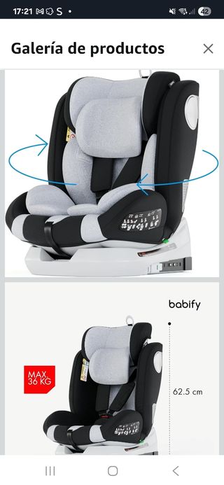 Silla de coche versátil, adecuada para niños desde recién nacidos hasta los 12 años. Permite girar la silla para facilitar la colocación del niño. - Homologada para un peso máximo de 36 kg. - Altura de 62.5 cm.