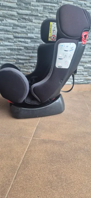 Silla de coche en color negro, con arnés de seguridad, grupo 1 y 2 es reclinable no tiene isofix - Arnés de 5 puntos. - Funda acolchada. - Incluye etiqueta de advertencia