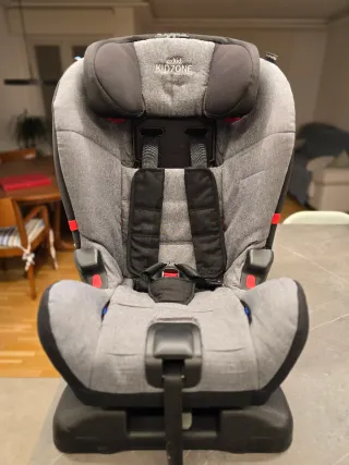 - Silla de coche Axkid Kidzone en color gris. - Gran seguridad y comodidad. Ajustable en altura y reclinado. - Tapicería de tela lavable. - Silla en muy buen estado, valorada en mas de 400 euros. - Es una Silla del Grupo 1/2 sin Isofix para niños de 9 a 25 kg. - Permite la instalación en 3 configuraciones diferentes, tanto a contramarcha como en el sentido de la marcha. - Dimensiones producto (alto,ancho, fondo) 67 x 45 x 63 cm - Cuenta con arnés interno de 5 puntos integrado se, ajusta automáticamente adaptándose al tamano del niño.