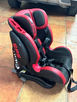 Silla de coche homologada con sistema Isofix, diseñada para la seguridad y comodidad. Esta nueva sin desgaste ni rozaduras, completamente funcional - Color rojo y negro. - Incluye arnés de seguridad de 5 puntos. - Reposacabezas ajustable.