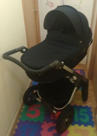 coche de la marca stokke el modelo trailz todoterreno en color gris oscuro tiene capazo completo y está con la etiqueta y todo con funda azul bajera silla completa con adaptador de recién nacido y funda echa a medida en tonos azules y grises a juego con el coche con su saco a juego y bolso a juego y también plástico de lluvia de la misma marca el coche me constó 1190 en el corte inglés más el plástico de lluvia 60 euros y la funda a medida con el bolso 200 euros el precio es por todo el modelo superior