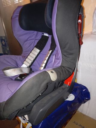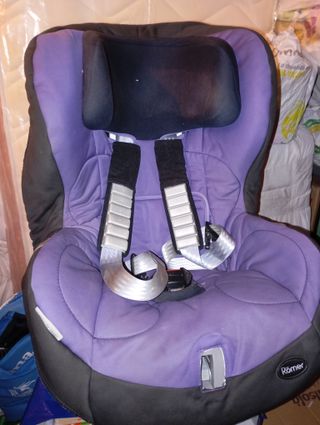Silla de coche de la marca Römer en color púrpura y negro. Cuenta con un arnés de seguridad de 5 puntos. - Color: Púrpura y negro. - Sistema de sujeción: Arnés de 5 puntos. Se ancla al coche con el cinturon. - Marca: Römer.
