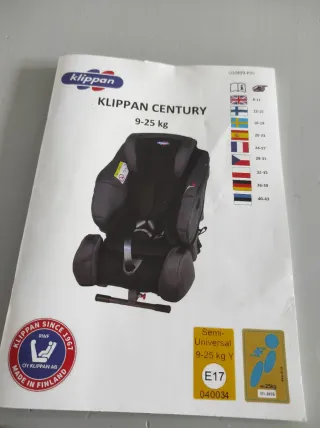 Silla de coche Klippan Century, apta para el grupo 1 (9-25 kg). - Homologación E17 040034. - Diseño semi-universal. - Indicada para instalación a contramarcha.