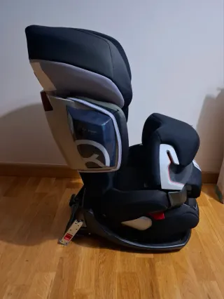 Silla de coche con sistema Isofix. - Sirve para todas las etapas del bebe/niño (grupos I, II y III). - Anclaje de 3 puntos al coche + el cinturón del vehículo. - Cinturón de 3 puntos ajustable a todas las etapas del bebe/niño - Acolchado en los cinturones de seguridad. - Se ha usado en un segundo vehículo y está perfecta.