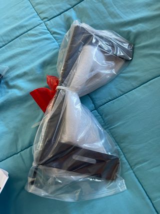 Silla de auto para bebé, diseñada para ofrecer seguridad y comodidad. - Diseño moderno en blanco y negro. - Incluye un recipiente transparente - Modelo Cybex -la funda de la silla y de los cinturones no sale en la imagen por qué se ha lavado