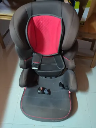 Silla de coche tipo alzador con respaldo, de la marca Nania. Sin idofix. El respaldo se puede quitar para usar sólo como alzador. Diseñada para ofrecer comodidad y seguridad. - Tapicería acolchada en color rojo y negro. - Cinturón de seguridad integrado.