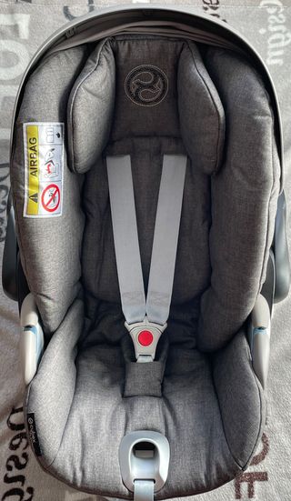 Silla de coche Cybex Cloud Z en color gris. Diseñada para la seguridad y comodidad del bebé. - Tejido texturizado en gris. - Incluye arnés de seguridad de 5 puntos. - Almohadillas de protección lateral. - Capota integrada. -Sistema de protección contra impactos laterales. 👁️ le falta una almohadilla del cinturón