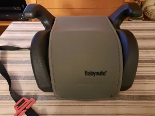 Sillita de coche tipo elevador, con un diseño práctico y seguro. - Tapicería gris. - Base de plástico negro. - Asa superior negra.