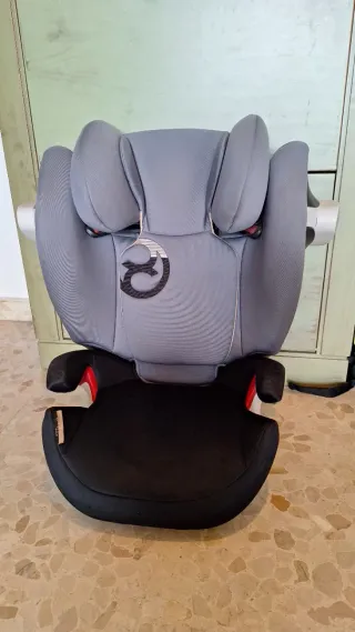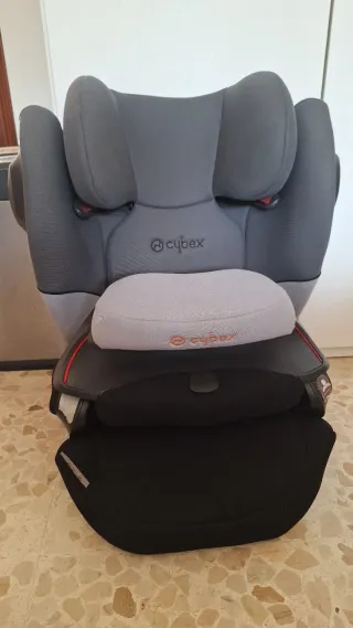 Silla de coche Cybex en color gris y negro. Cuenta con un reposacabezas ajustable y un cojín adicional. - Diseño ergonómico. - Tejido suave y resistente. - Marca: Cybex.