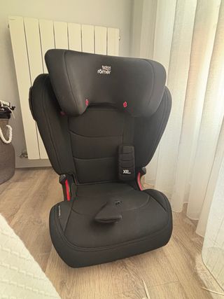 Silla de coche Britax Römer en color negro. Diseñada para la seguridad y comodidad. - Reposacabezas ajustable. - Sistema XP-PAD para protección. - Funda extraíble y lavable.