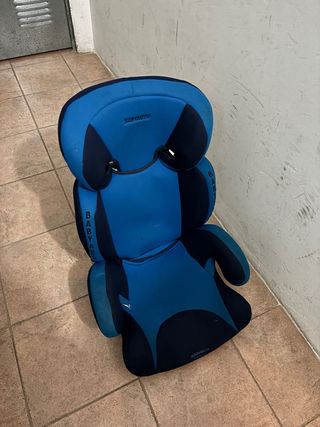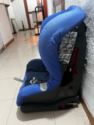 Silla de coche de la marca Römer en color azul. Se encuentra en buen estado. - Diseño acolchado para mayor comodidad. - Arnés de seguridad de 5 puntos. - Funda extraíble para facilitar la limpieza.